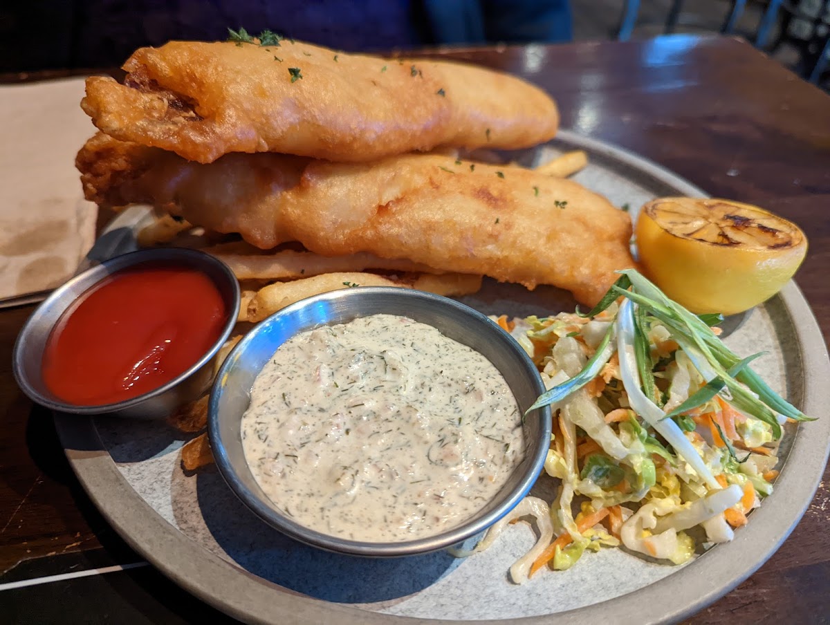 The menu showcases a variety of American classics with a twist, making it a culinary adventure for any food lover. One standout dish is the BAJA TACOS, featuring your choice of crispy battered cod or crunchy tofu, topped with zesty chipotle aioli and a medley of fresh ingredients including pickled red onions and jalapeños, served alongside house-fried tortilla chips for an added crunch. Another must-try is the ENGLISH STYLE FISH & CHIPS, where tender, beer-battered cod tails rest atop a bed of perfectly salted fries, accompanied by house-made coleslaw and tartar sauce, all designed to whisk you away to the English seaside with every bite.